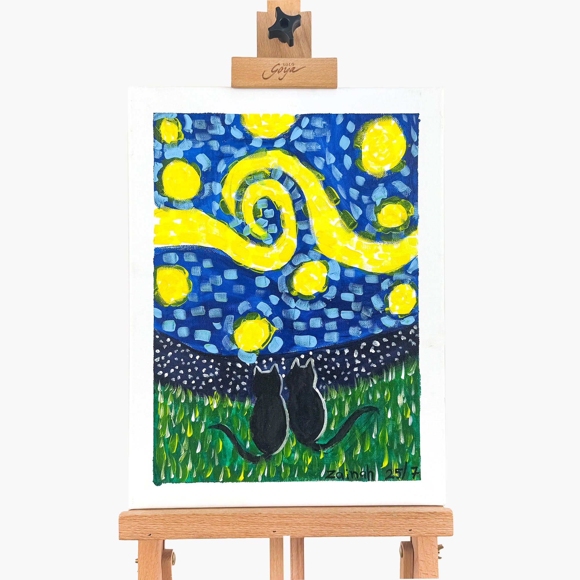 Starry Night Cats by Zainah Al ShallalA 30 x 40 cm acrylic canvas that captures energy and color, perfect for brightening any space.