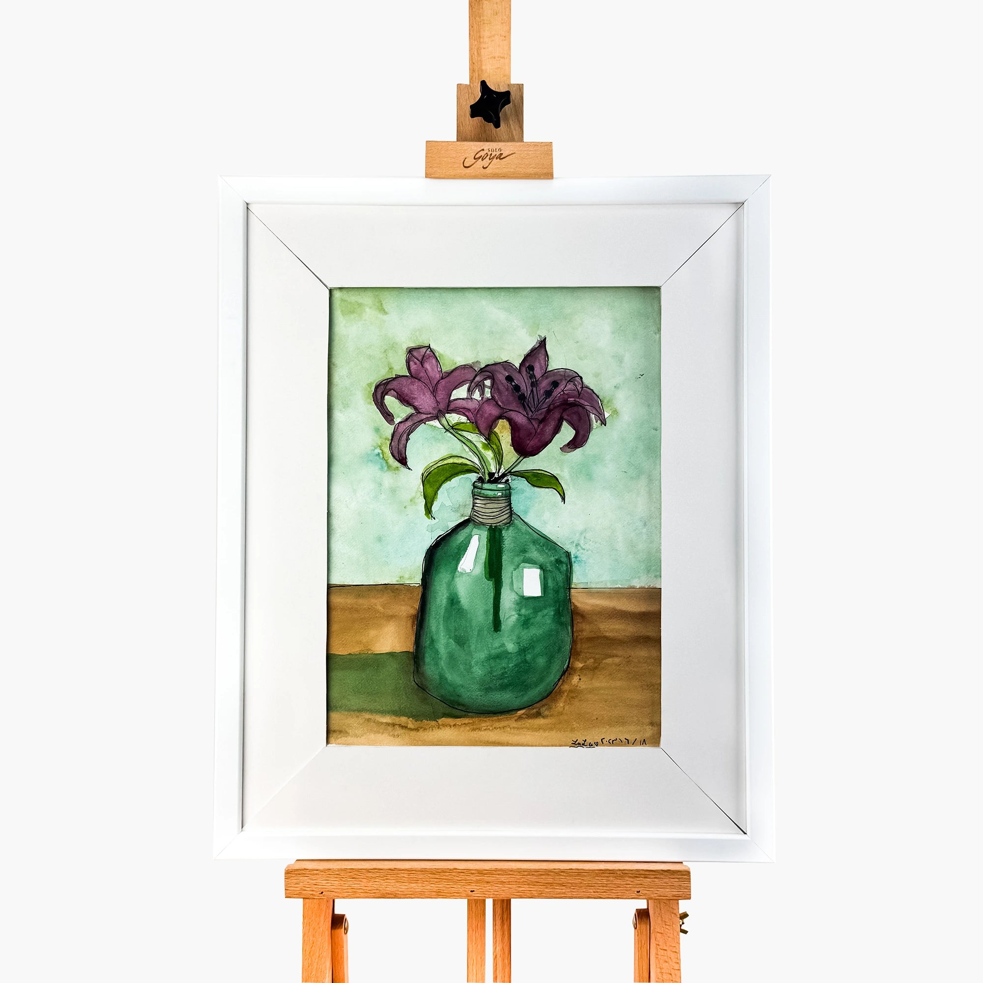 This 40 x 50 cm framed watercolor piece brings vibrant color and contemporary style to any space.